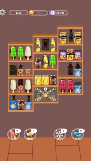 在游戏界面中,玩家需要通过手指滑动将三个或以上相同物品连成一线来完成消除操作,每次成功消除都会获得相应分数奖励。游戏采用直观的触控操作方式,让玩家能够快速上手,感受流畅的游戏体验。