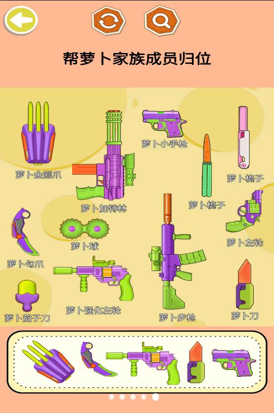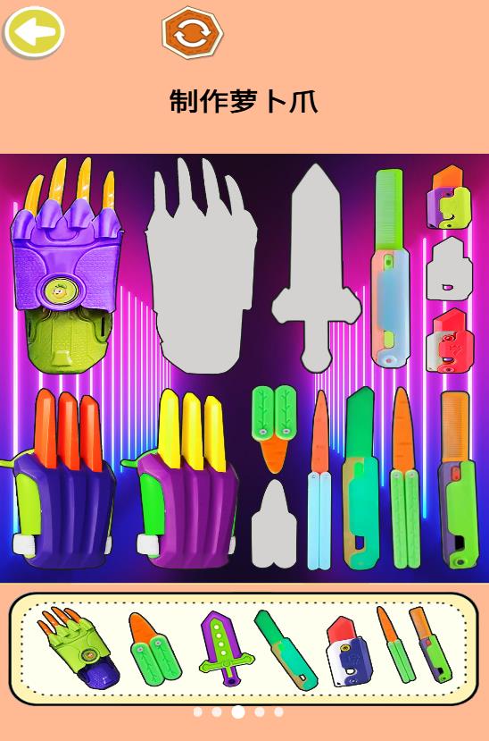 金刚萝卜爪是一款以武器组装为核心玩法的创新手游。在游戏中,玩家可以自由拼装各种形状、大小和材质的萝卜刀,并通过丰富的涂色系统赋予它们独特的视觉效果。游戏提供了多种基础武器形状,包括剑形、刀形、弯刀形等,玩家可以随时调整武器模型,尝试不同的组合方式,创造出独一无二的战斗装备。无论是追求实用性的战斗武器,还是偏爱华丽外观的收藏品,金刚萝卜爪都能满足你的需求。
