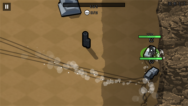 艰难道路是以精美的画风制作的一款俯视角战车射击生存类游戏,由"毒厂"111%推出,在游戏中玩家能够驾驶自己的战车来进行战斗。游戏初期建议优先升级战车防御性能,因为后期敌人的火力会大幅增强。合理分配金币资源,不要一味追求攻击力而忽视机动性。摧毁那些敌人的战车并且收集各种各样的零部件来进行射击,通过各种各样的部件组合成全新的战车。建议玩家多尝试不同的部件组合,某些看似普通的配件组合在一起可能会产生意想不到的效果。游戏还提供了不同的能力可以使用,在战场上要灵活运用这些特殊技能,比如护盾技能适合面对密集火力时使用,而加速技能则能帮助快速脱离危险区域。