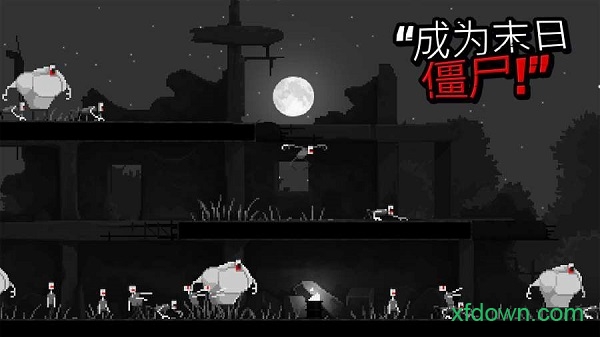 在这个充满黑色幽默的末日世界里,僵尸是最忠诚的士兵。它们不会罢工,不会抱怨,只会无条件执行你的每一条命令。唯一的遗憾是,这些沉默的战士无法与你分享深夜电影或讨论有趣的书籍。想要壮大你的不死军团?最简单的方法就是感染人类!不需要甜言蜜语,不需要浪漫约会,只需要让你的僵尸在人类身上留下一个"爱的咬痕"(咬哪里都可以),他们就会立即加入你的队伍。游戏采用精致的像素画风,虽然模型简约,但在细节处理上非常用心,特别是僵尸眼睛周围的细节刻画尤为出色。