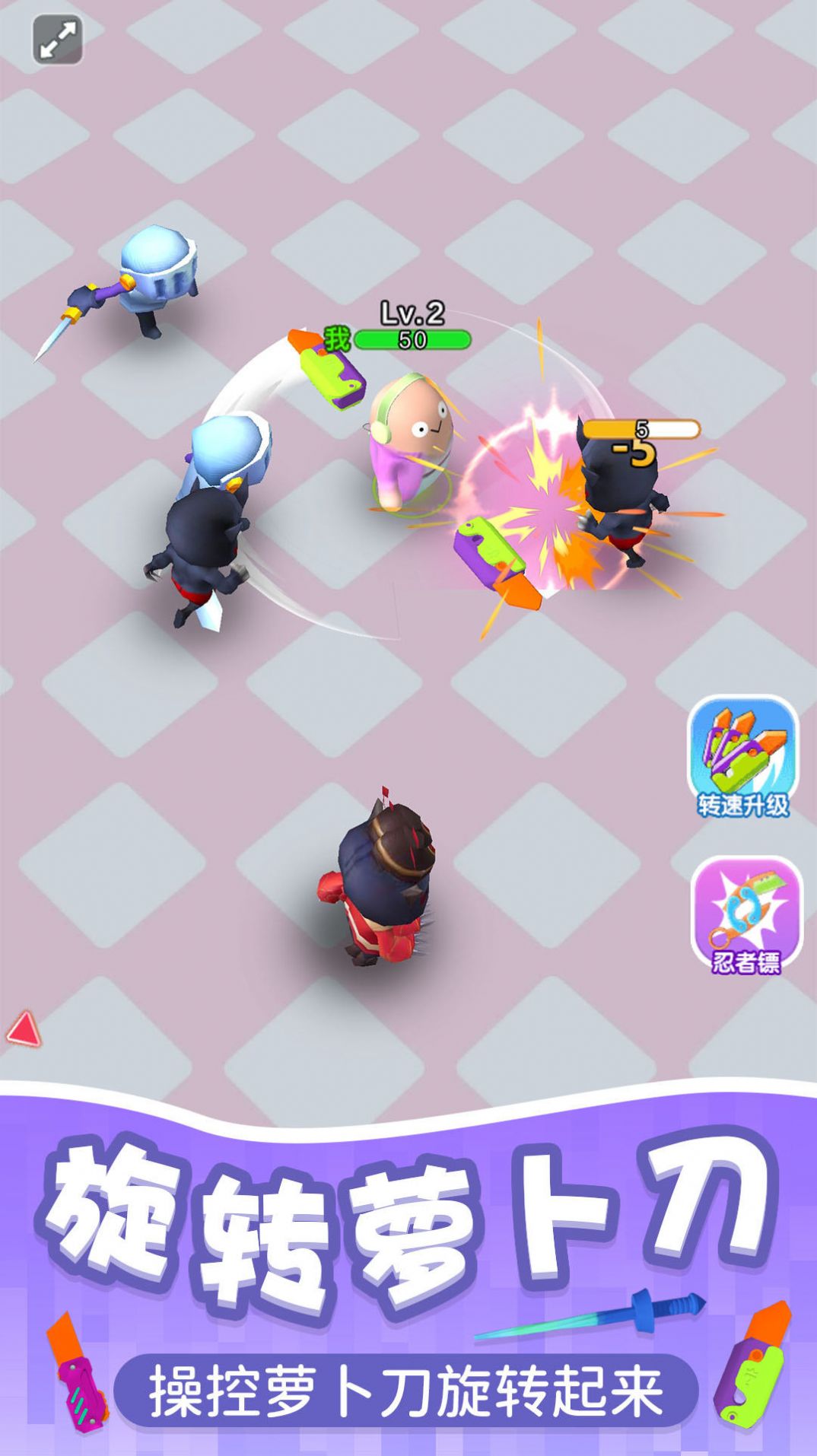《萝卜刀冲呀冲》是一款充满趣味的休闲动作手游,玩家将化身为手持神奇萝卜刀的战士,在奇幻世界中展开刺激的冒险。游戏采用轻松愉快的战斗方式,通过不断击败敌人来强化你的萝卜刀,不仅能提升战斗力,还能解锁炫酷的外观变化。丰富的角色选择、多样的装备搭配以及激烈的PVP对战,让每位玩家都能找到属于自己的战斗乐趣。无论是单人闯关还是多人竞技,都能带给你畅快淋漓的游戏体验。