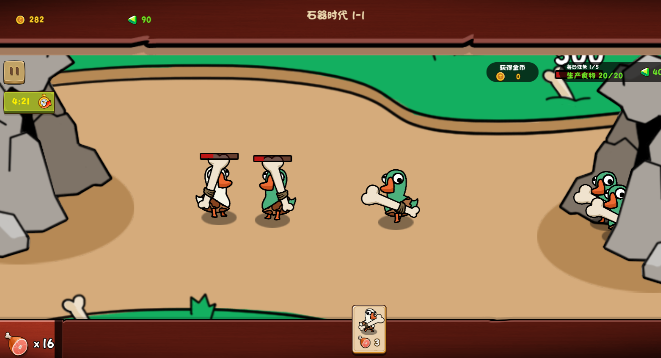第一关的关键在于快速积累2000金币,完成从石器时代到农耕时代的升级。时代变迁后,所有鹅鹅士兵都会获得显著的能力提升,包括基础属性和特殊技能。农耕时代的士兵在攻击力和防御力上都有质的飞跃,能够轻松应对第一关的敌人。建议在升级时代前尽量多积累一些金币,这样升级后可以立即强化多个兵种。