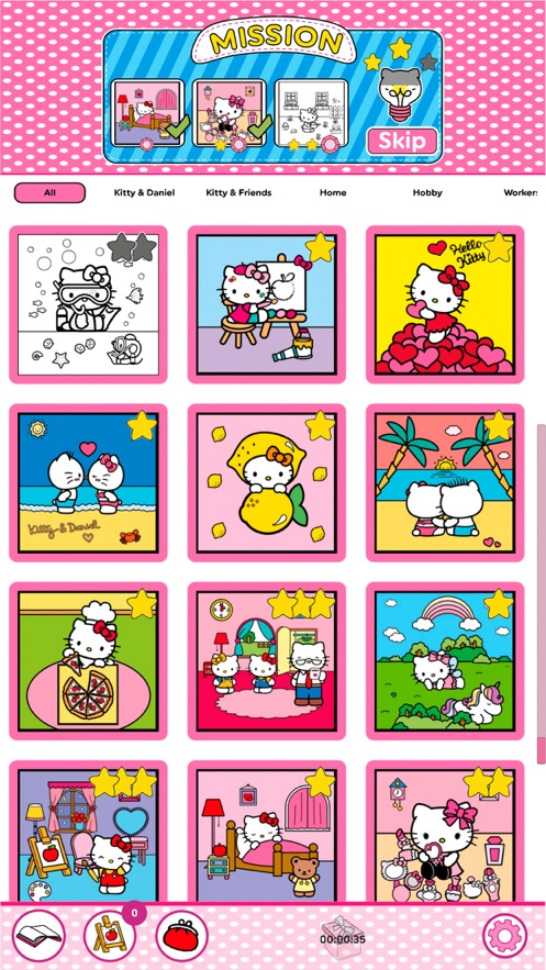 凯蒂猫儿童图画书提供了多种适合各年龄段的休闲玩法。玩家可以选择喜欢的图片,按照数字提示进行填色,这种简单有趣的玩法特别适合低龄儿童。游戏还设置了专门的画廊功能,可以保存和欣赏自己创作的所有作品。此外,玩家还能遇到凯蒂猫和她的朋友们,这些可爱的角色会陪伴孩子们度过愉快的绘画时光。无论是想要放松心情,还是希望培养孩子的专注力,这款游戏都能带来令人满意的体验。