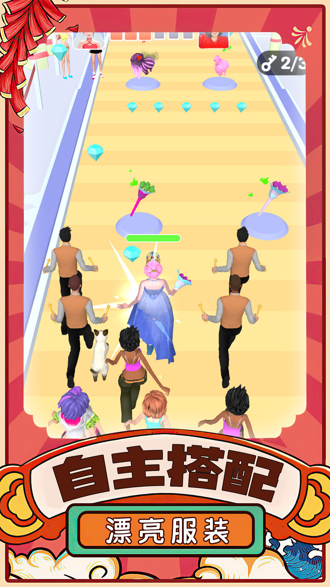 《浪漫时装秀》是一款融合跑酷与换装玩法的创意休闲游戏,玩家将操控角色在充满浪漫气息的赛道上疾驰,收集散落的捧花、礼服、高跟鞋等时尚单品。通过指尖操作完成华丽转身,搭配出独一无二的造型,最终在闪耀的T台上展现你的时尚品味。游戏采用清新明亮的画风,配合动感音乐,带来沉浸式走秀体验。无论是收集控还是搭配达人,都能在这里找到属于自己的乐趣,开启一场别开生面的时尚冒险之旅。