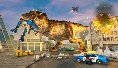 在城市中进行破坏:玩家可以操控恐龙在精心设计的3D城市中肆意破坏,感受毁灭的快感。