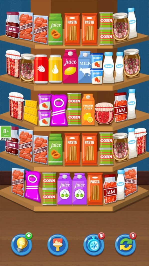 背景音乐轻快舒缓,让人感到轻松愉悦,营造出放松的游戏氛围。画面简洁明快,主要以彩色的商品和货架为主,视觉效果清新舒适。操作非常简单,只需要用拖动商品到正确的位置即可完成整理,适合所有年龄段的玩家。游戏还加入了多种主题场景,让整理过程更加丰富多彩。随着关卡的推进,玩家还能解锁更多有趣的装饰和道具。