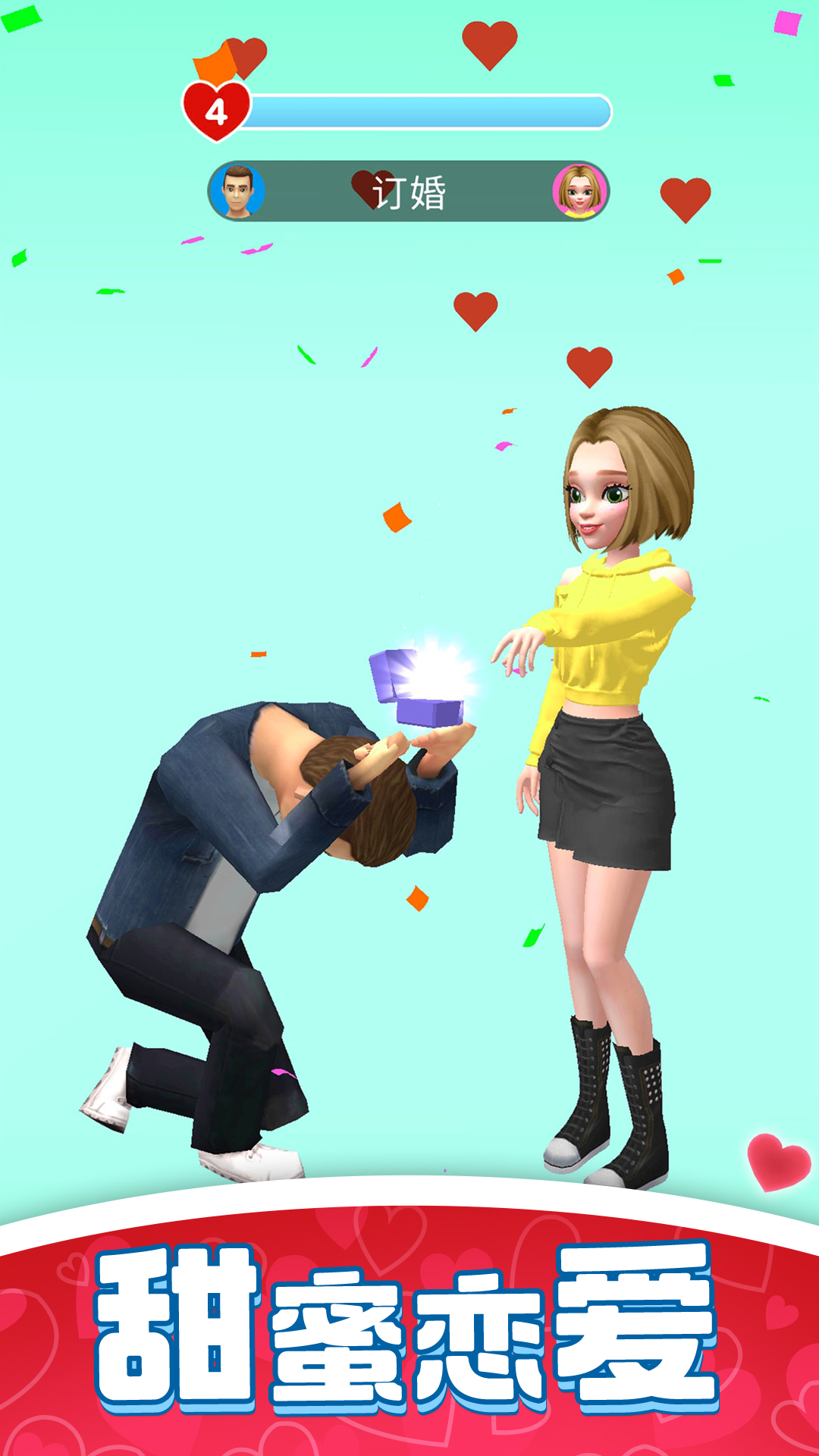 这是一款极具创意的休闲恋爱模拟游戏,采用Q版卡通风格呈现,人物造型萌趣可爱。在游戏中你可以完全按照自己的喜好选择恋爱对象,体验从相识到相恋的完整过程。游戏特别设计了多种真实的恋爱场景,包括咖啡馆初遇、电影院约会等,让你能身临其境地感受恋爱中的甜蜜与心动。通过丰富的互动选项,你可以塑造独特的恋爱故事,收获专属于你的浪漫结局。
