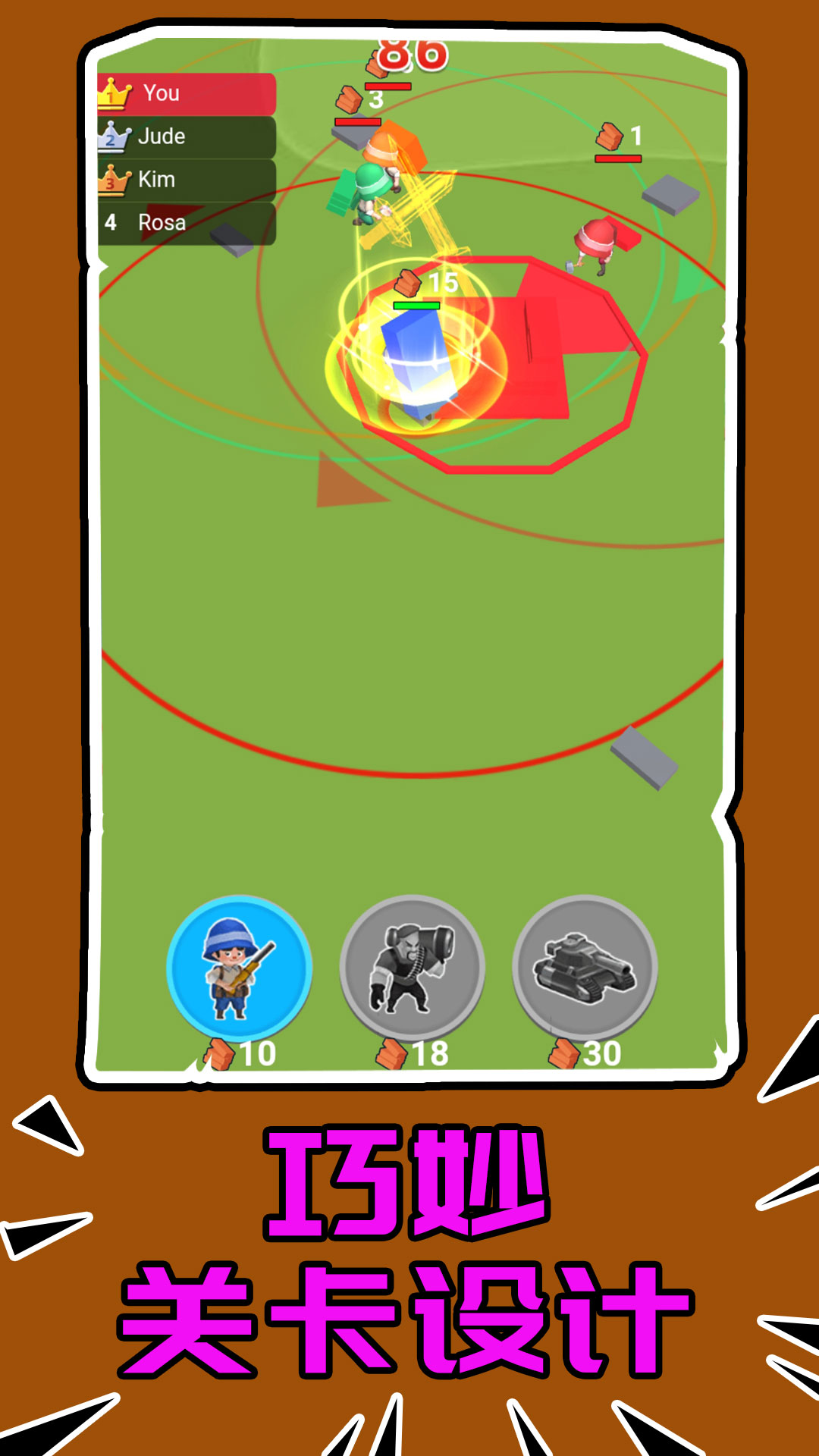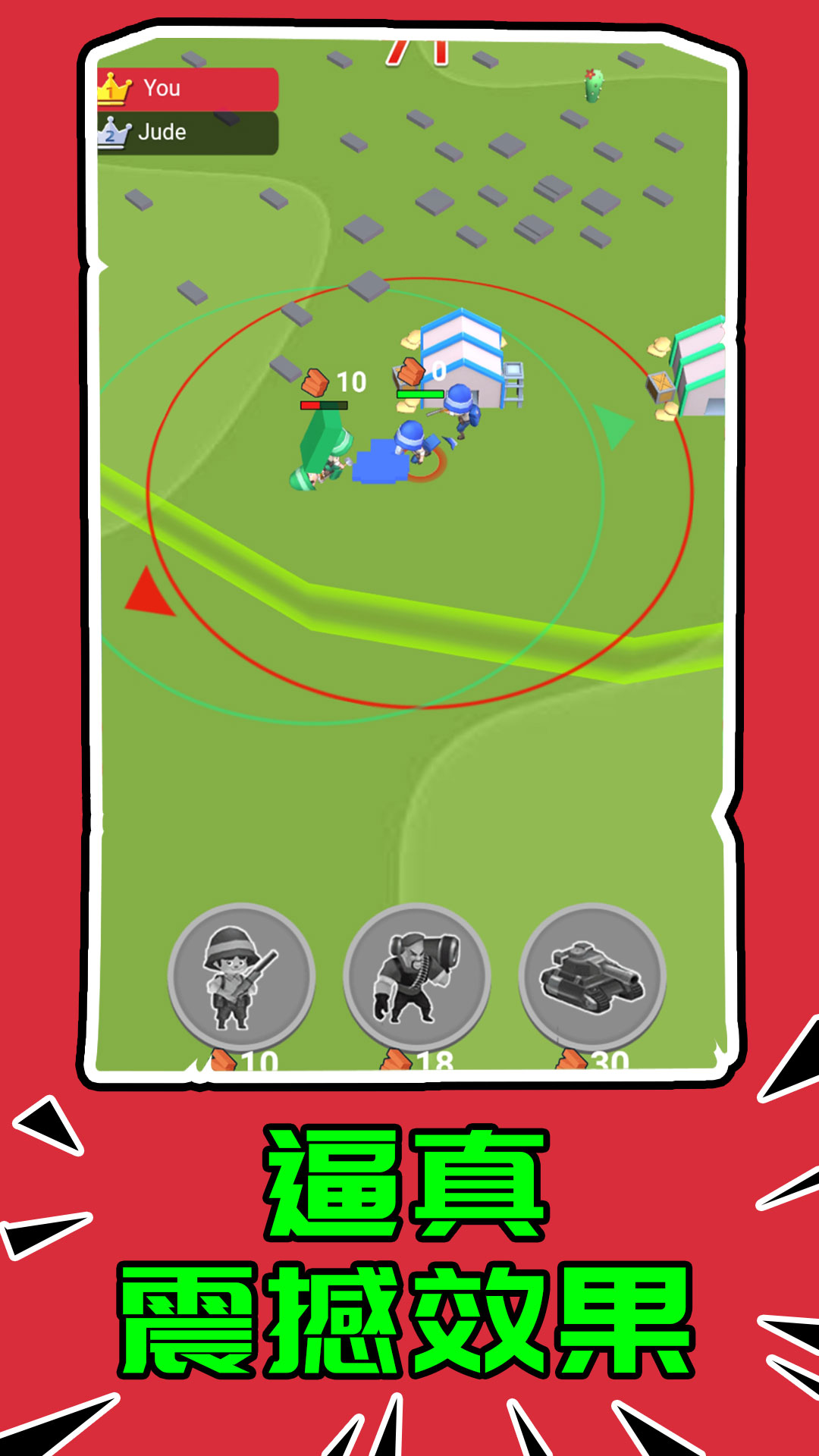 最强突击部队是一款充满策略与挑战的休闲地盘抢夺战地游戏。在这款游戏中,玩家将化身为一名指挥官,带领自己的部队在激烈的战场上争夺地盘,扩大势力范围。游戏的核心玩法围绕着地盘抢夺展开,玩家需要不断招募士兵、壮大队伍,并通过合理的布阵和战术安排来击败对手。每一次战斗都是对玩家策略能力的考验,只有不断优化队伍配置,才能在这场地盘争夺战中取得最终胜利。