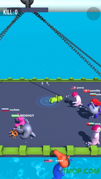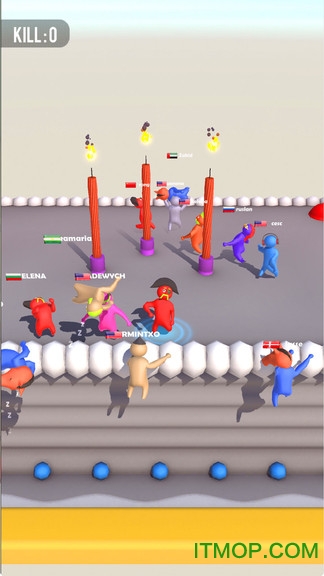 游戏最吸引人的地方在于玩家与玩家之间的激情碰撞,基于物理引擎打造的趣味大乱斗系统让每一场对决都充满变数。你需要巧妙运用击打技巧,将对手打晕后再扔出场外,这种策略性的玩法大大提升了游戏的可玩性。值得注意的是,角色在被连续击打后会进入眩晕状态,因此你需要时刻注意自己的处境,该逃跑时就要果断撤退,打不过就先躲一下,保存实力才是制胜关键。游戏采用积分制结算方式,扔出去的对手越多,你的排名就越高。当比赛时间结束时,系统会根据淘汰人数进行排名,谁扔的人多谁就是当之无愧的胜利者。这种简单直接的胜负判定方式,让每一场比赛都充满了紧张刺激的竞技乐趣。