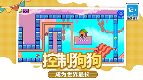独特的角色设定:游戏颠覆了传统蛇类游戏的设定,将主角设计为一只可伸缩的萌犬sese,随着游戏进程,sese的身体会像小蛇一样逐渐变长,最终进化成独一无二的"狗狗蛇"形态,为玩家带来前所未有的视觉体验和游戏乐趣。