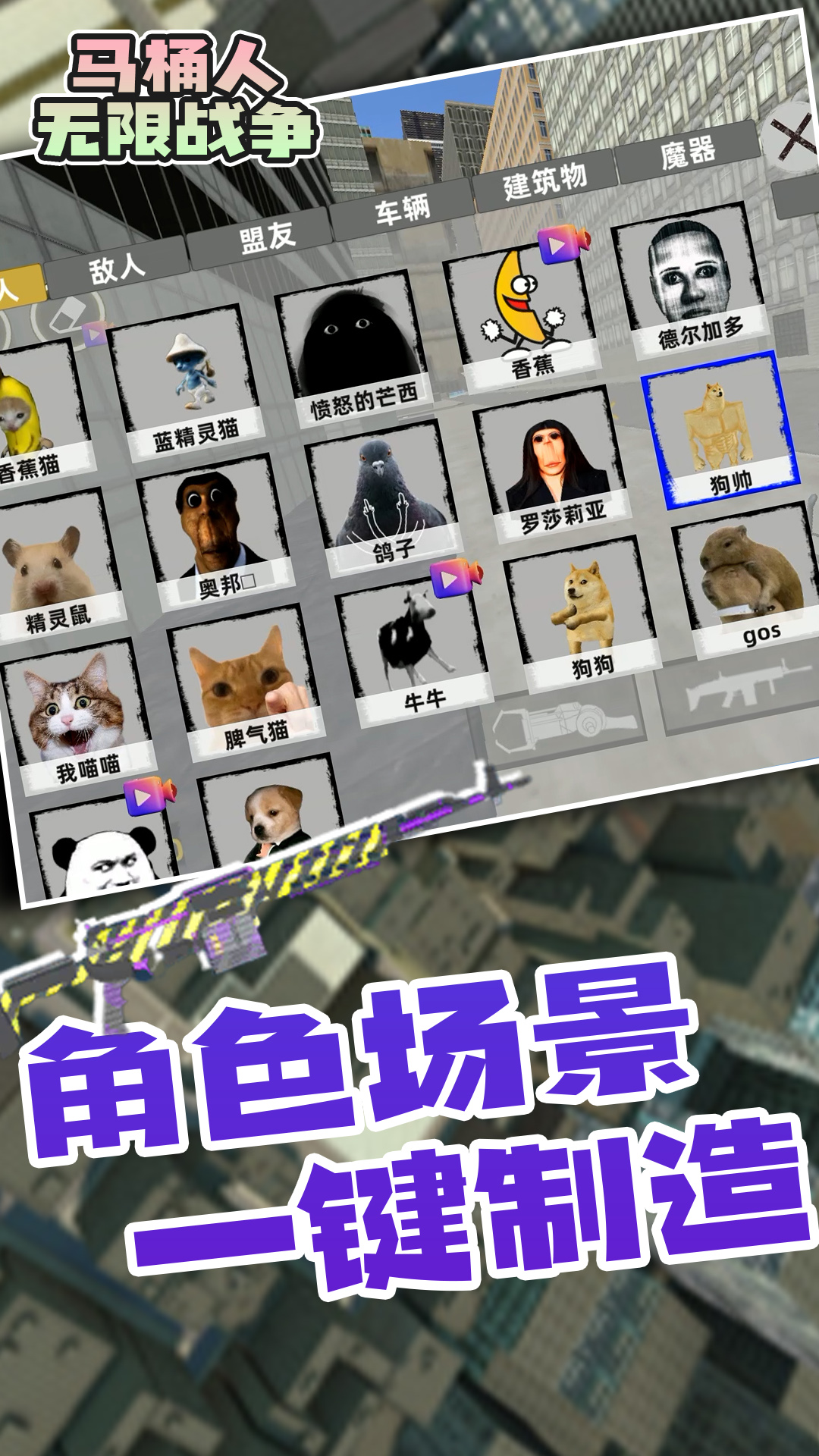 作为一款融合枪战与沙盒元素的创新游戏,马桶人为玩家提供了丰富的游戏内容和极高的自由度。在这里,你可以选择自己喜欢的武器道具,与各种恐怖角色展开一场畅快淋漓的战斗。游戏内拥有数十种独特的角色造型和武器类型,任玩家随意挑选搭配。无论是近战格斗还是远程射击,都能找到最适合自己的战斗风格。此外,游戏还设计了多种趣味玩法,包括解谜、建造、生存等,保证让你玩得停不下来!