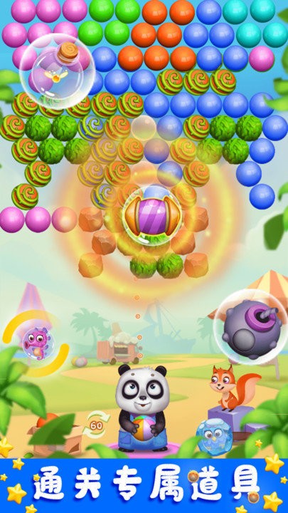 游戏采用简单直观的玩法设计,极易上手但又充满挑战性,让人一玩就停不下来。超过3000个精心设计的关卡将全面考验你的泡泡射击技巧和策略思维。游戏画面采用精美可爱的卡通风格,各种萌趣角色和炫丽的特效让视觉体验更加丰富。萌熊消消乐适合全年龄段玩家,无论是小朋友、青少年还是成年人,都能找到属于自己的乐趣。游戏完全免费且无需联网,让你在任何时间、任何地点都能享受消除带来的快乐。