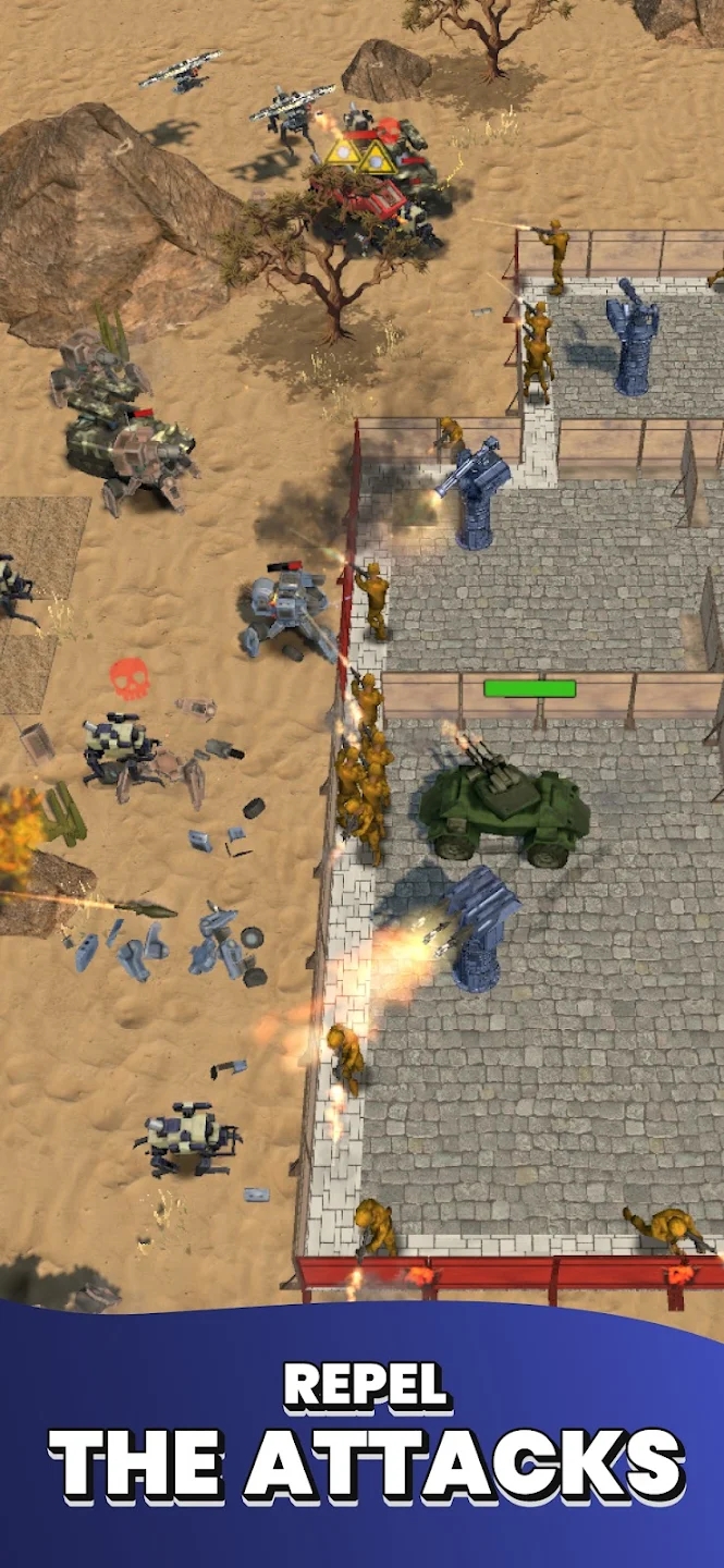 在这款充满未来科技感的塔防游戏中,你将肩负起拯救人类文明的重任。面对机械军团的全面入侵,你需要建立坚固的防御工事,培养精英战士,研发新型武器系统。游戏采用独特的基地建设机制,允许玩家自由规划防御布局,同时还能招募并培养拥有特殊能力的英雄角色。随着战况升级,你需要不断调整战略部署,在关键位置集结兵力,才能在这场关乎人类存亡的战争中取得胜利。