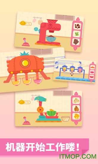 可爱而具有机械感的超多机器,带给宝宝独特糖果制作体验,每台机器都配有生动动画效果,让孩子感受糖果制作的奇妙过程;