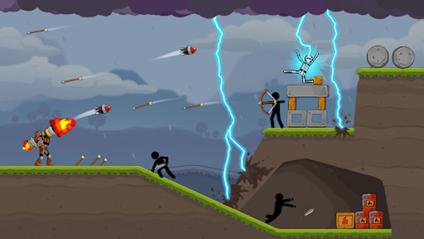 构建多层结构摧毁机制,木质支架可引发连锁坍塌,炸药桶能扩大爆破范围,承重柱破坏导致整体建筑失衡崩解。游戏还加入了液体物理效果,击破水箱会形成水流冲击,影响爆炸范围和敌军移动。