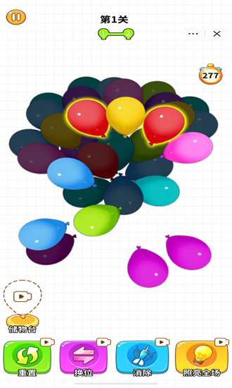 游戏拥有简洁明快的画面风格,搭配轻松愉悦的背景音乐,为玩家营造出舒适的游戏氛围。经典的消除玩法让玩家能够快速上手,简单的操作方式让游戏体验更加流畅。随着关卡的深入,难度会逐步提升,这不仅考验玩家的观察力,还能锻炼逻辑思维能力。游戏还设有多种道具和特殊气球,为消除过程增添更多趣味性和策略性。