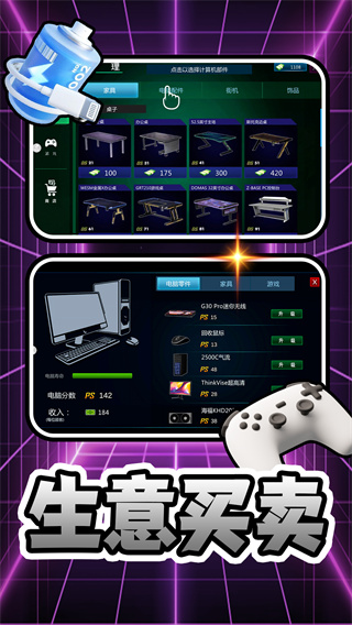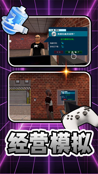 体验经营网吧,买卖各种娱乐设施,如电脑零件、电脑等,满足顾客的各种需求,提升产品多样化。玩家可以自由搭配设备,打造独特的网吧风格,吸引不同类型的顾客光临。通过不断优化产品组合,提升网吧的竞争力。