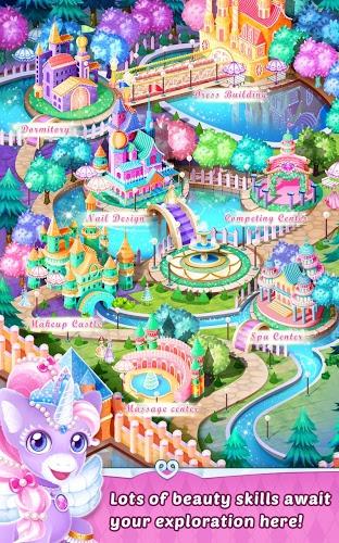 美妆城堡里琳琅满目的化妆品定会让你目不暇接,在这里你可以学习打造精致妆容的技巧。当然,细节决定成败,美甲课程也是必修项目,发挥创意设计出独一无二的指尖艺术吧!游戏过程中收集的星星可以用来解锁特殊物品,竞技台上的考核将检验你的学习成果。完成课程任务还能获得宝石奖励,集齐同等级所有宝石可以升级守护独角兽并解锁更多高级物品。