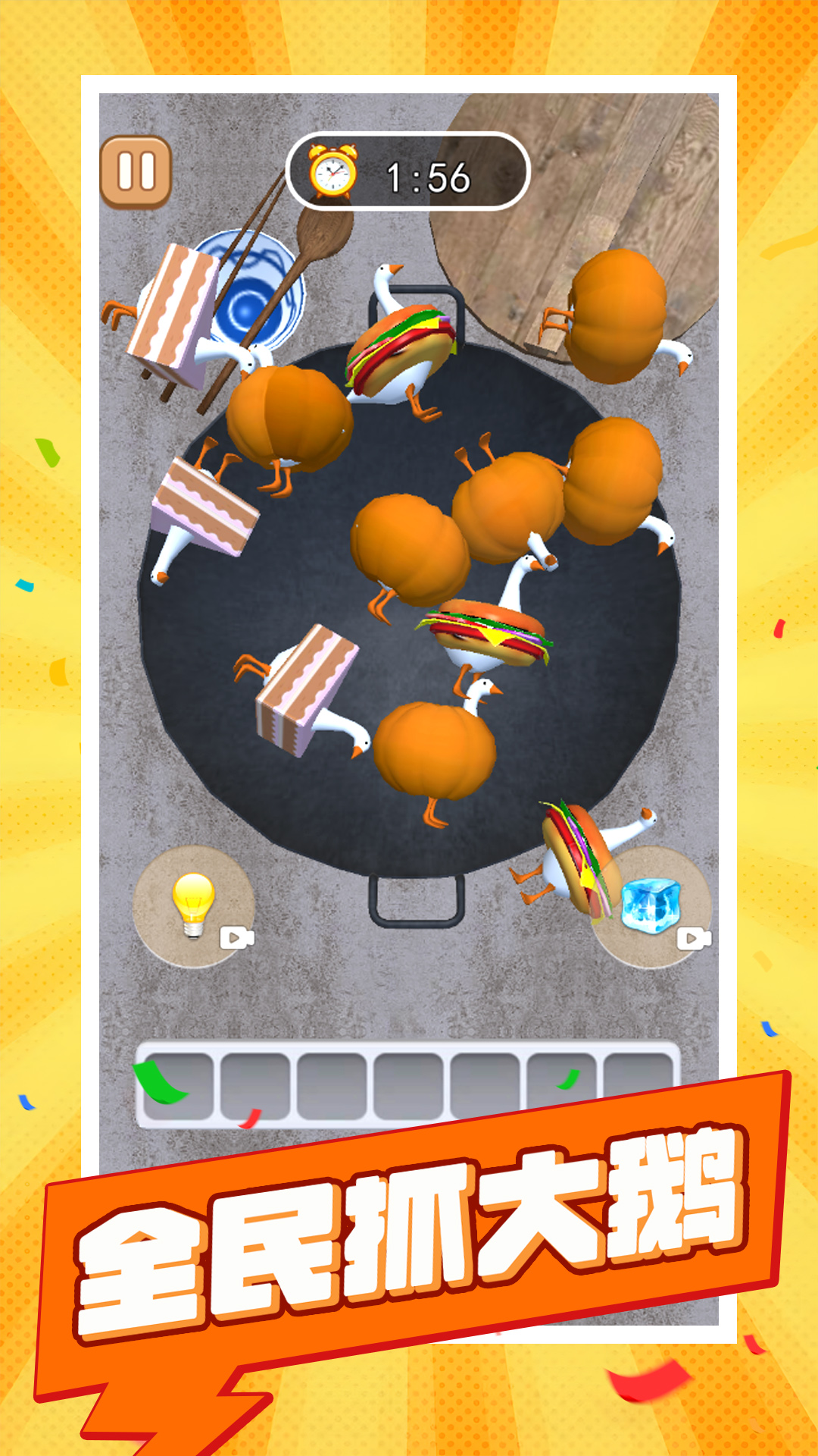 游戏提供了多种不同的场景和道具,玩家可以解锁并使用这些道具来帮助自己更高效地捕捉大鹅。例如,使用加速道具可以暂时提升角色的移动速度,而冰冻道具则能让大鹅短暂停止移动,为玩家创造更多机会。此外,游戏还设有丰富的成就系统和排行榜功能,玩家可以与好友一较高下,争夺最高分的荣誉。