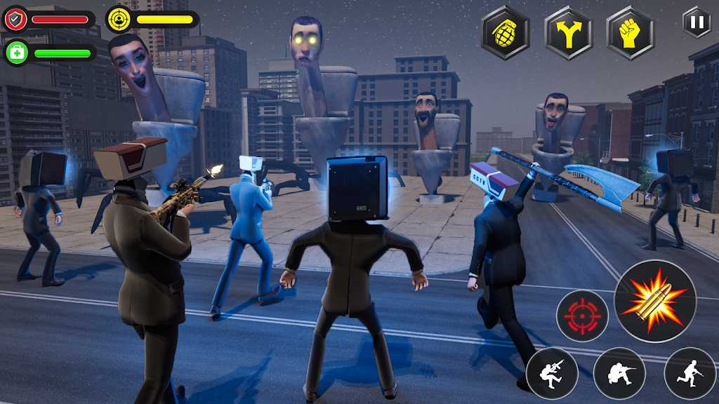 瞄准射击,相机光线作为子弹对抗马桶怪兽,合理运用各类特殊技能,不同技能组合可以产生意想不到的战斗效果;