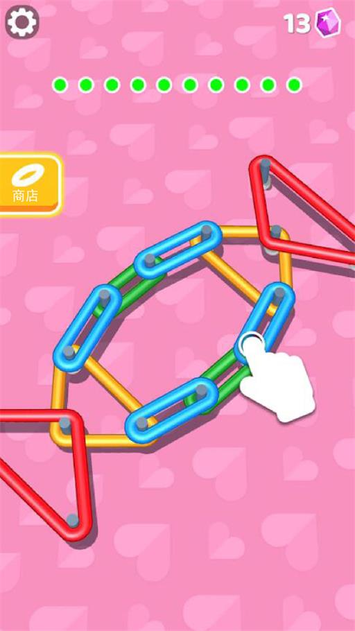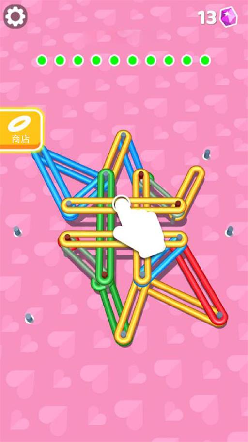 不断缠绕、放置图钉,掌握一定的技巧,就可以轻松完成任务,操作手感流畅自然。