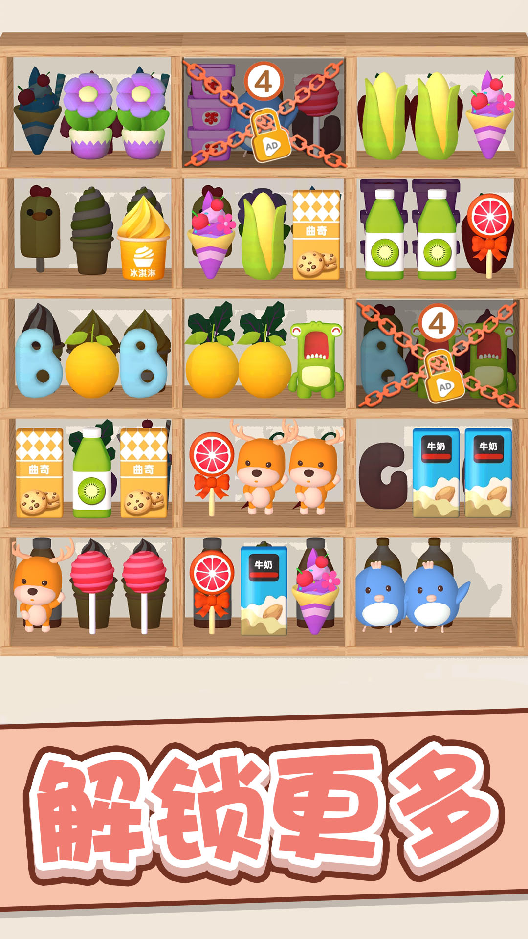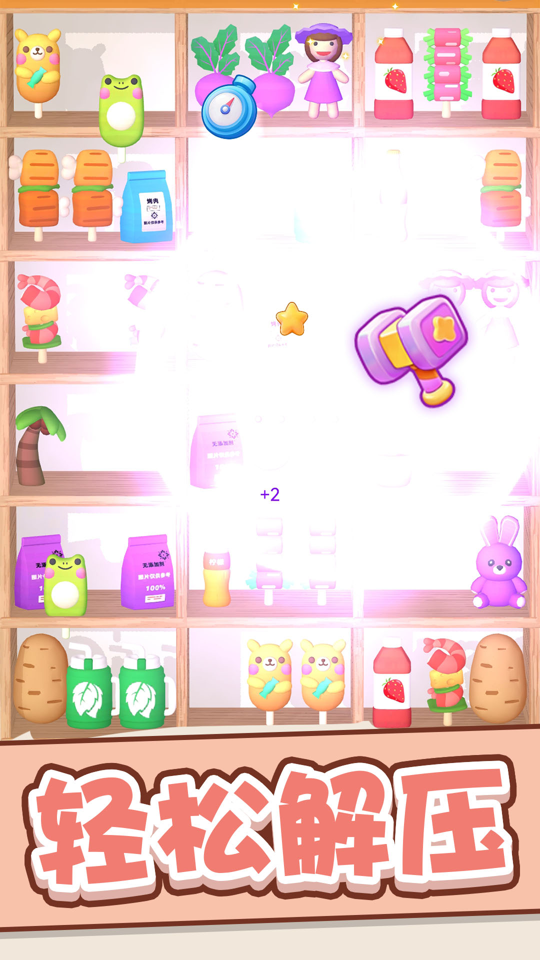 在游戏过程中,玩家需要在规定时间内消除屏幕上的物品,消除数量越多得分越高。每个关卡都设有不同的目标分数,达到要求即可解锁新关卡。游戏内道具系统十分丰富,除了基础的炸弹道具外,还有可以改变物品位置的调换道具、能消除整行物品的激光道具等。这些道具可以通过游戏内任务获得,也可以通过策略性使用来创造更高的连击分数。