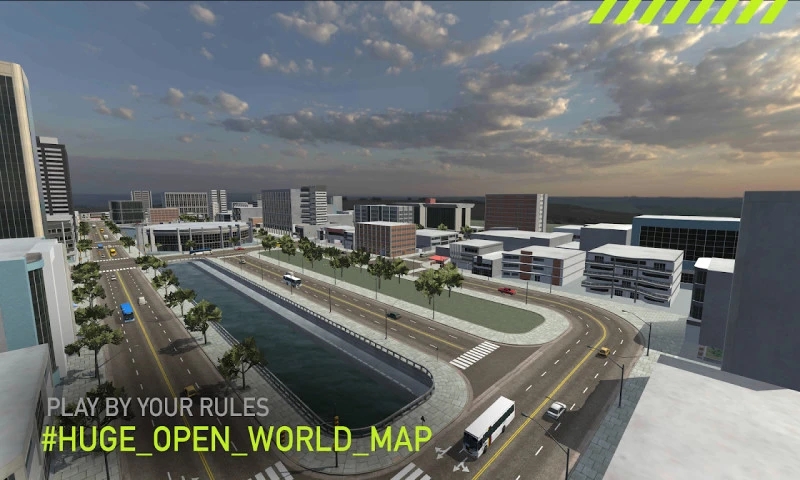 开放世界驾驶模拟器,随处驾驶,交通标志和比赛。游戏地图面积广阔,包含城市、郊区、山区等多种地形,每个区域都有独特的风景和驾驶挑战。