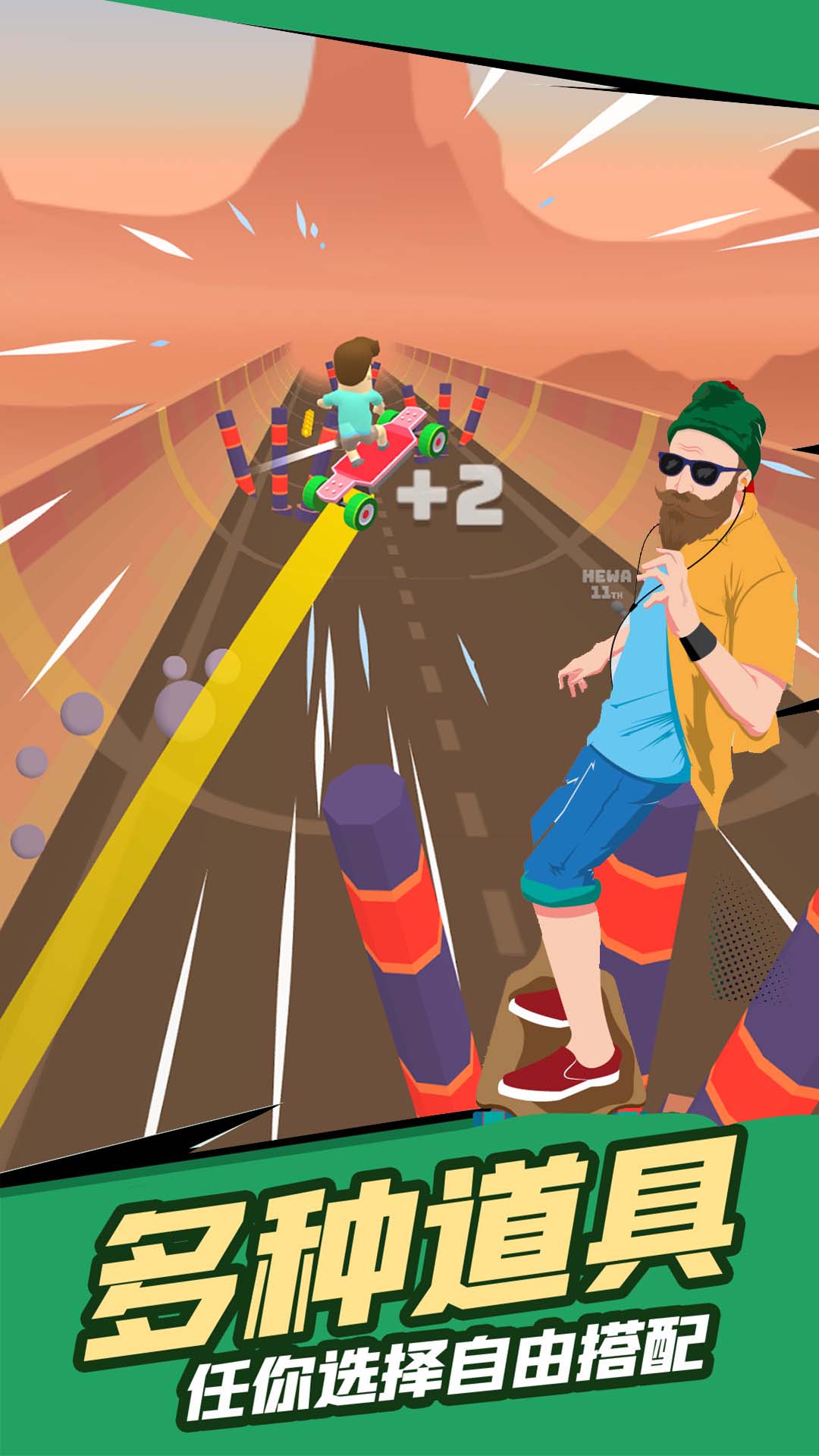游戏提供了数十种风格各异的滑板和骑行装备选择,满足不同玩家的个性化需求;酷炫的外观设计和丰富的表情系统,让每个角色都能展现出独特的滑板风格;精心打造的音效系统和充满创意的图形设计,共同营造出令人沉浸的多彩赛道世界。