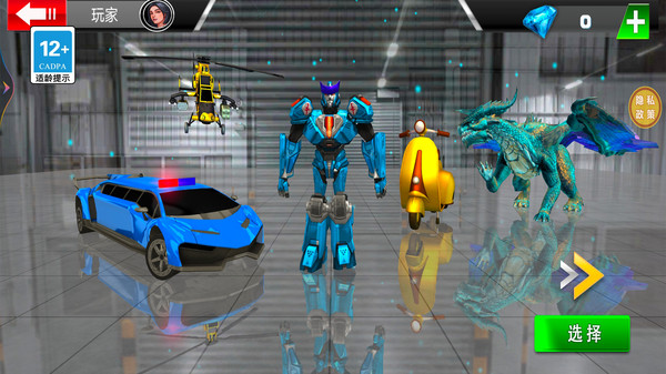 在角色选择界面中,点击绿色"选择"按钮即可切换不同机甲或载具,解锁你喜欢的外观与能力。每个机甲都有详细的属性说明和技能演示,选择前可以充分了解其特点。