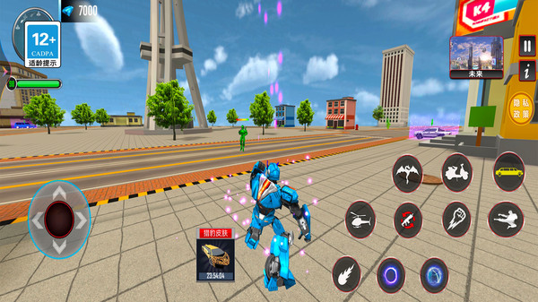 使用左下角摇杆进行角色方向控制,操纵飞龙飞行穿梭于城市之间,自由移动探索各个区域。长按摇杆可以启动冲刺模式,快速穿越大型地图。