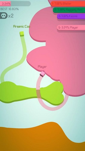 游戏的核心玩法是圈地占领,玩家需要快速绘制封闭区域来扩大领地。领地越大,获得的分数就越高。但要注意,其他玩家可能会入侵你的领地,所以需要时刻保持警惕。游戏支持多种操作模式,包括触屏绘制和虚拟摇杆控制,满足不同玩家的操作习惯。随着等级提升,还能解锁特殊技能,如瞬间移动、区域冻结等,让对战更加精彩刺激。