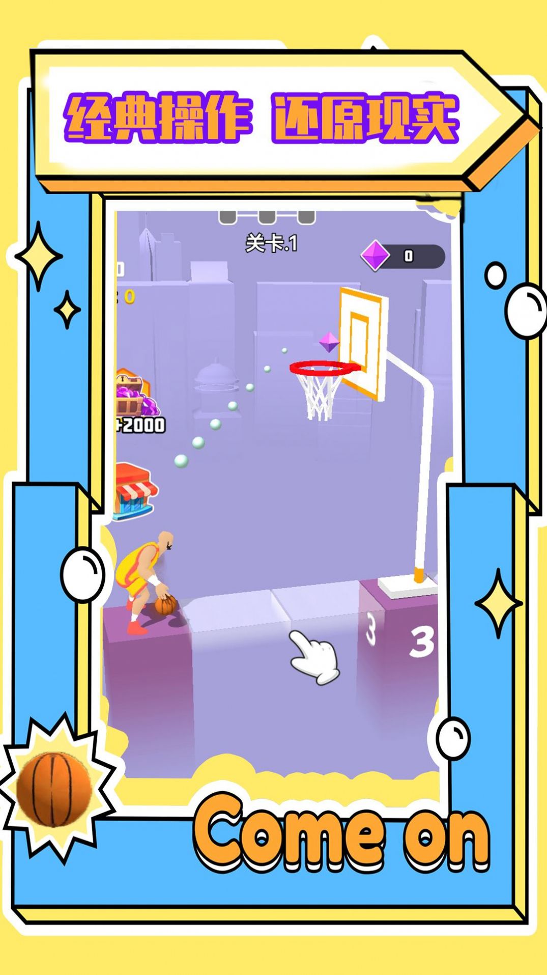 通过拖动操作调整投球角度和力度,将球放入蓝色方框内。操作方式直观易懂,但想要精准控制需要一定练习,这种平衡性设计让游戏既容易上手又富有深度。