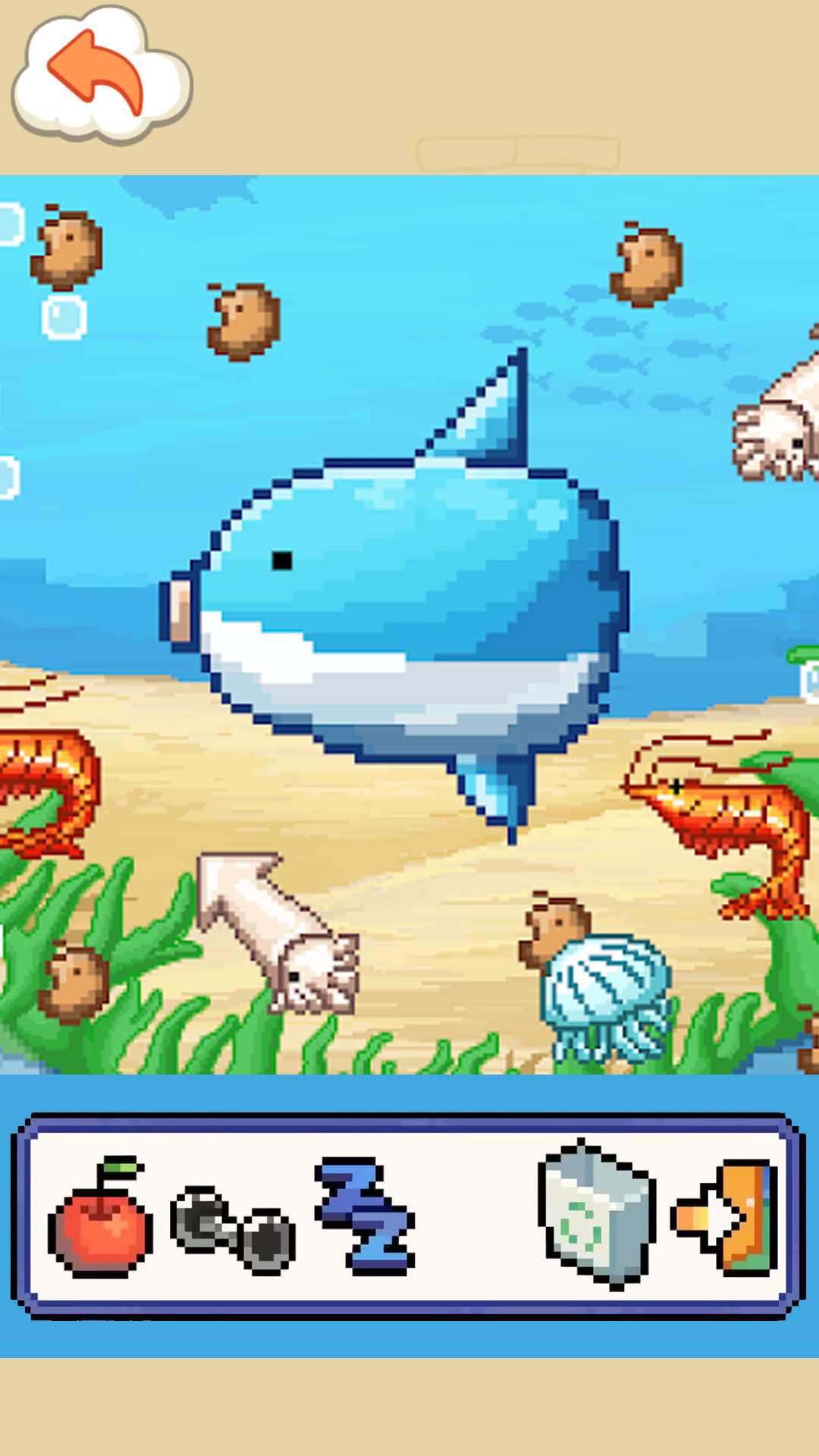 游戏采用复古像素风格的画面设计,色彩鲜明且充满童趣,为玩家营造了一个简约而不失生动的虚拟世界。玩家需要时刻关注小鲨鱼的饥饿度、健康状态和成长进度,通过喂食、清洁、玩耍等操作来确保它的健康成长。随着小鲨鱼的成长,玩家还能解锁更多有趣的互动方式和装饰道具。游戏还特别加入了天气系统和昼夜变化,让养成体验更加真实。