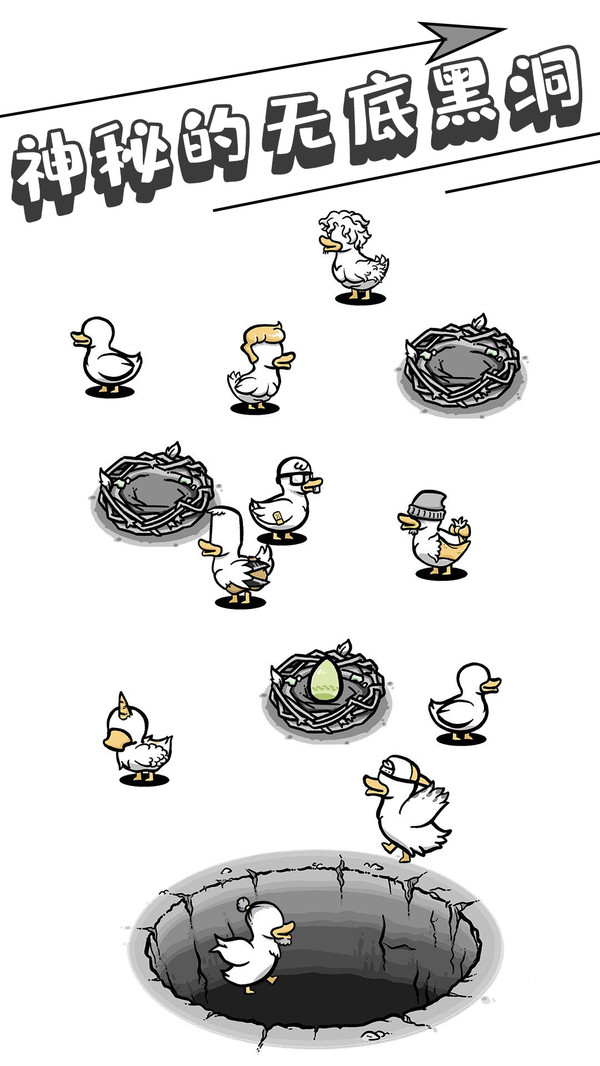 奇怪鸭子下蛋为玩家打造了一个充满奇幻色彩的鸭子王国。随着一代代的精心培育,您将有机会见证各种令人难以置信的鸭子变异形态。从体型巨大的巨无霸鸭子,到长着奇特翅膀的飞行专家,再到拥有各种疯狂特征的变异品种,每一只鸭子都是独一无二的艺术品。游戏特别设计了神秘的洞穴系统,当您将精心培育的鸭子投入其中时,可能会触发意想不到的奇妙变化,这种充满未知的探索过程让游戏充满了惊喜和期待。