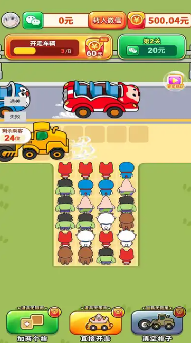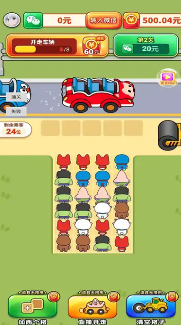 想要在萌宝请上车中获得更多红包奖励,玩家可以掌握以下技巧:最前面的小动物可以直接上车或进入候车区;当遇到与汽车类型相匹配的动物时,要优先安排它们上车;凑齐3个相同动物即可完成发车任务;每完成一个关卡都能获得相应的现金奖励。此外,游戏还设置了每日任务和连续登录奖励,积极参与这些活动能获得额外红包。