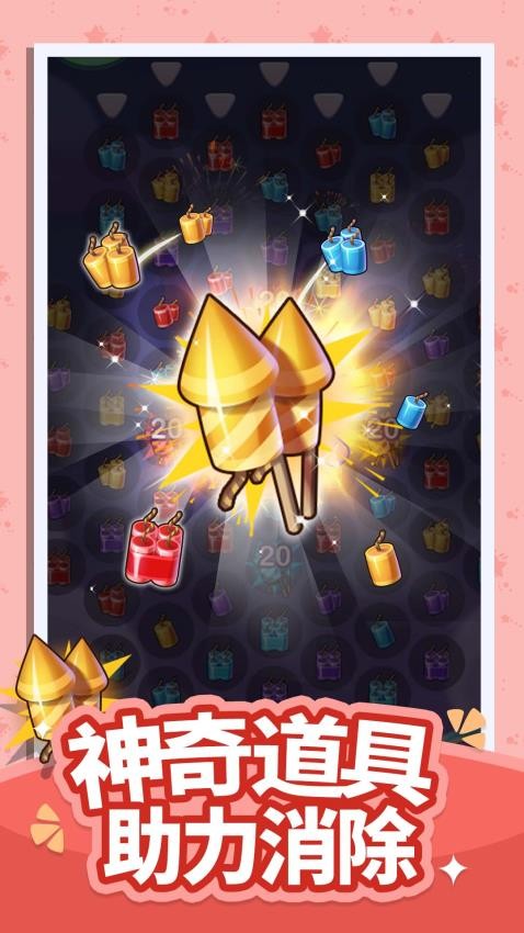 当玩家连接超过三个烟花时,会生成特殊的高能爆竹。这些爆竹拥有更强大的爆炸范围和更炫目的视觉效果。合理利用这些特殊爆竹可以轻松清除大片区域,为玩家创造更多得分机会。