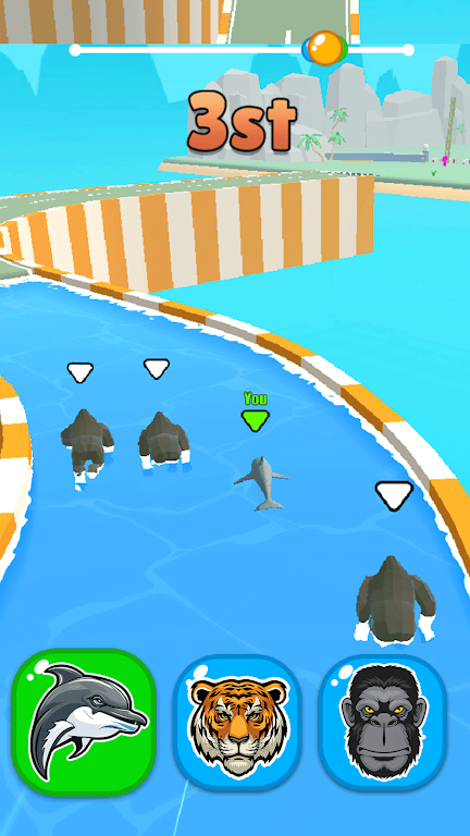 游戏提供了丰富多样的玩法体验。在角色选择方面,玩家可以解锁超过20种不同动物,每种动物都拥有独特的属性加成和特殊技能。赛道设计极具创意,包含了沙漠绿洲、热带雨林、极地冰川等10种不同主题的赛道环境,每个赛道都设置了独特的障碍物和地形变化。道具系统更是增添了游戏的策略性,玩家需要合理收集和使用加速道具、护盾等增益效果。同时,游戏还引入了天气系统,晴天、雨天、雪天等不同天气状况会影响赛道环境和动物表现。