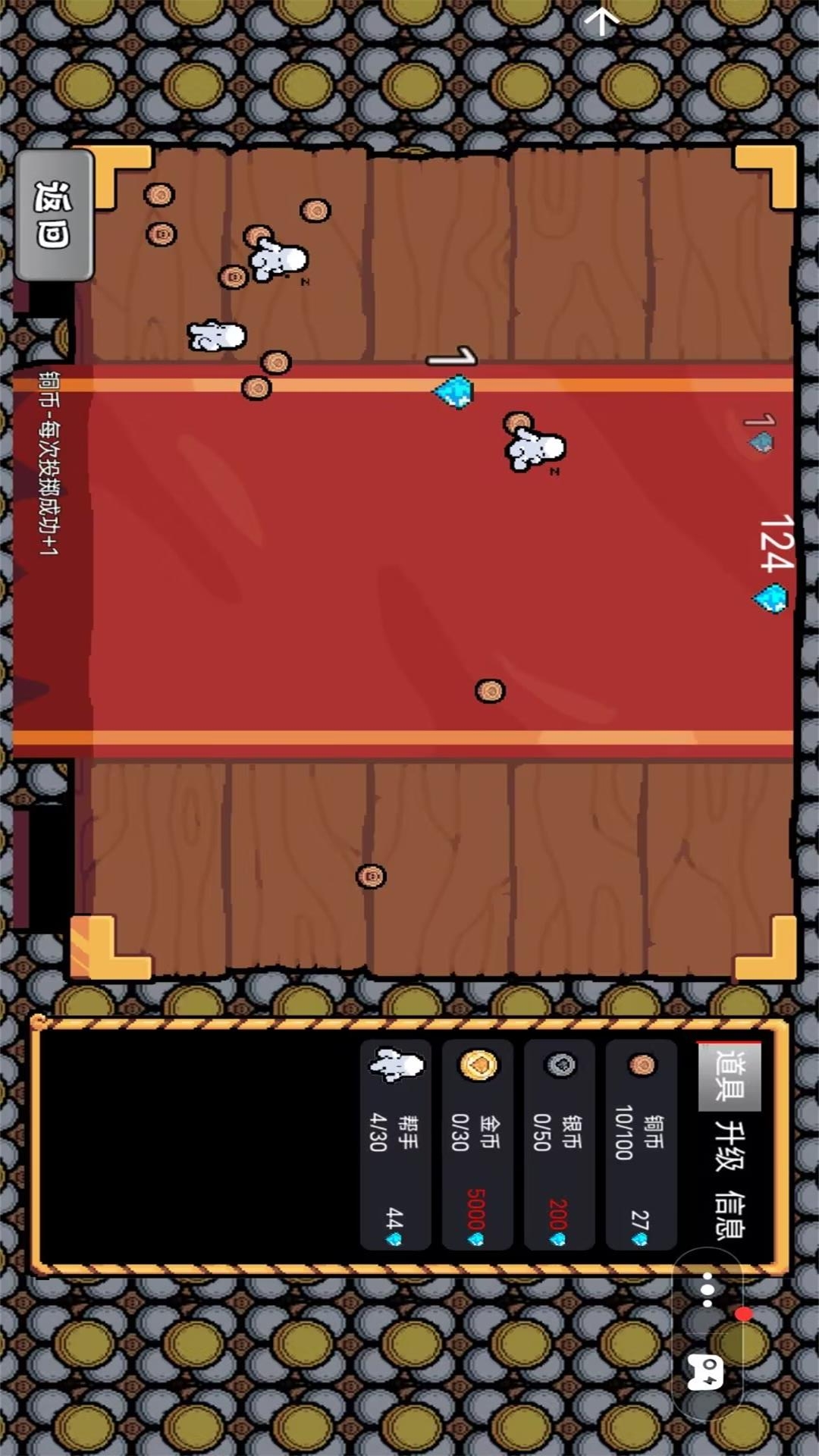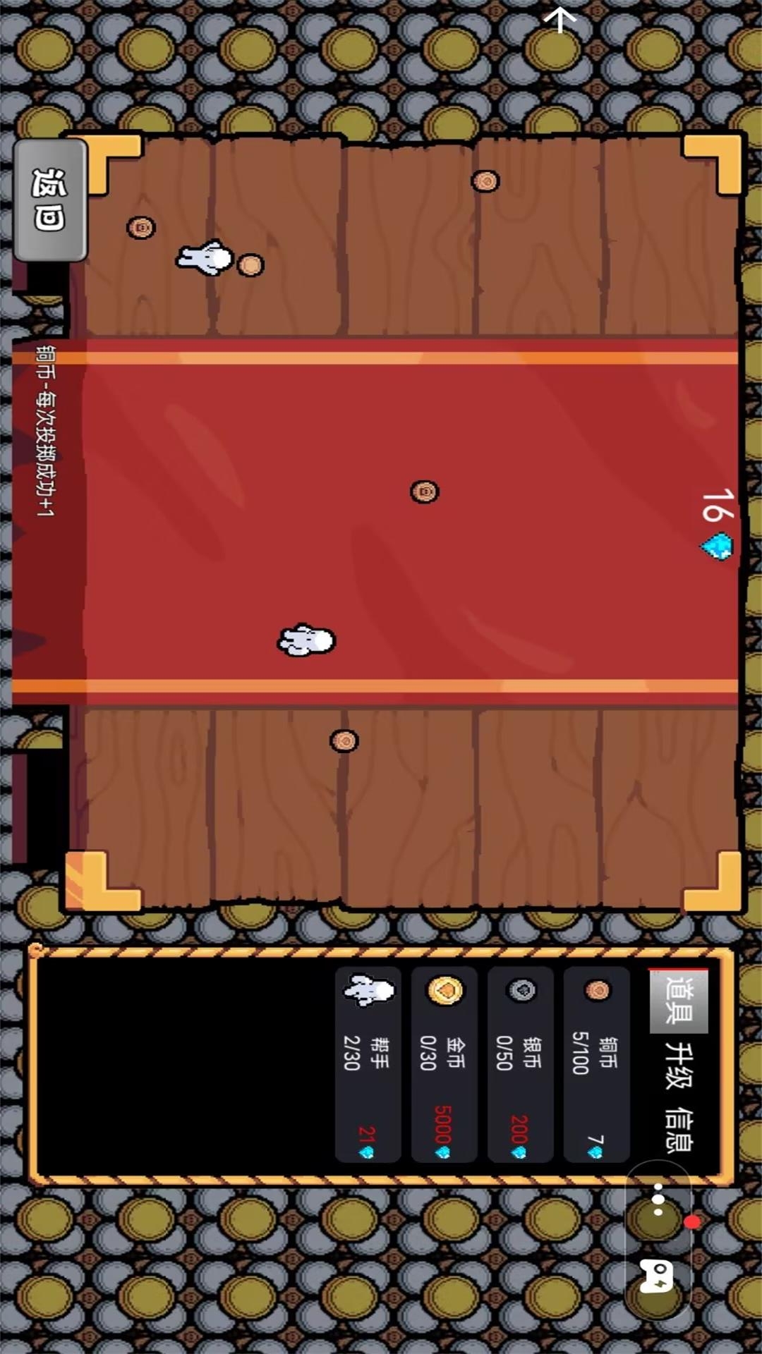游戏贴心地设计了自动化系统,当你的硬币事业初具规模后,可以雇佣可爱的卡通小帮手来接管重复性的抛掷工作。这些性格各异的小助手们会不知疲倦地为你工作,让你即使离线也能持续获得收益。随着游戏进程推进,玩家还能解锁各种功能强大的升级选项,比如提高抛掷速度的"快手"技能、增加暴击概率的"幸运星"buff等,每个升级都能带来显著的收益提升。