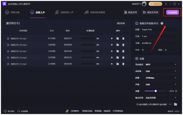 支持一键批量处理多个文件,显著提升工作效率,特别适合需要同时处理大量音频素材的用户群体。