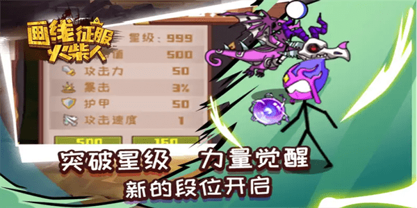 采用简约而不简单的美术风格,火柴人角色设计生动有趣,战斗特效华丽震撼。