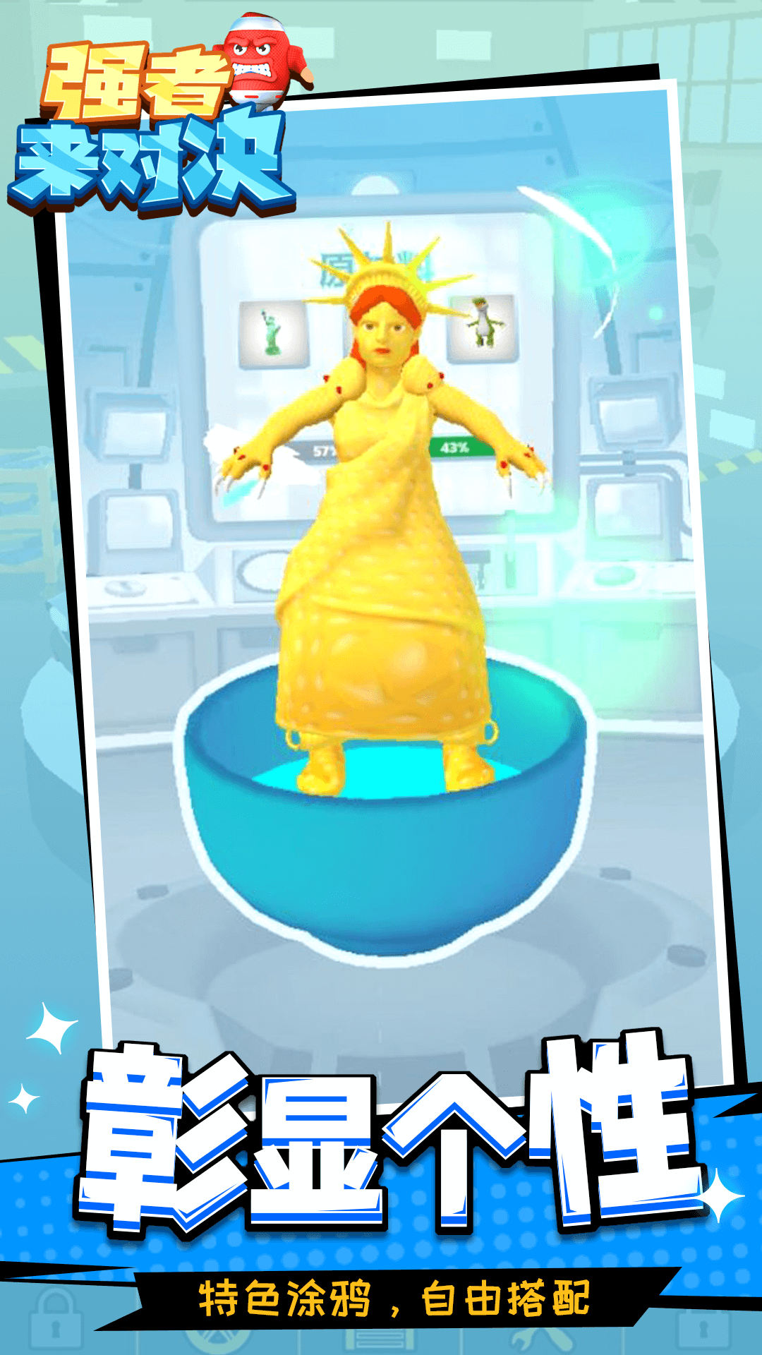 《强者来对决》是一款充满创意与激情的格斗类游戏,它将自由创造与热血对战完美结合,为玩家带来前所未有的游戏体验。在这个游戏中,你可以尽情发挥想象力,从零开始打造专属于你的强者战士。无论是角色的外观造型、服装搭配,还是战斗技能、特殊能力,全部由你一手掌控。通过细致入微的定制系统,你可以创造出独一无二的战斗角色,用最炫酷的造型和最强大的实力征服所有对手。