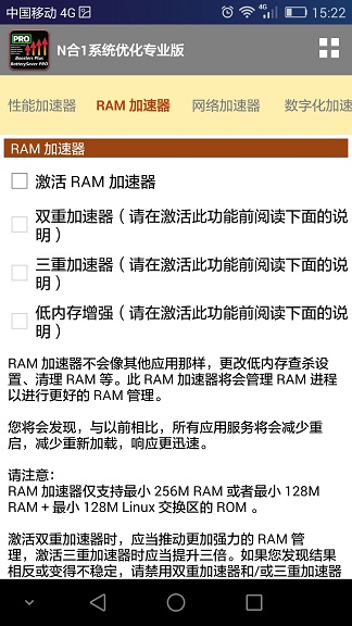 性能加速器,也就是原先的Performancebooster,已经开放了二次、三次加倍booster,绝对管用!用过PB的都知道,手机立刻流畅不少!新增的自适应加速模式能根据当前运行应用自动调整优化策略,特别适合多任务处理场景。RAM加速器,实际上我的手机ram够用,所以我开启这个之后并没有很明显的手机效能提升,低内存的煤油可以试试效果~不过应用重载貌似确实少了不少。该功能采用智能内存压缩算法,可将后台应用内存占用降低50%以上,大幅提升应用切换速度。网络加速器,我一直使用wifi,而且我家20m光纤,所以实际上我的网络已经够快了……所以用了这个之后自然没感觉到什么,还等其他美友来试验吧!新增的智能QoS功能可优先保障游戏和视频流量,有效降低网络延迟和丢包率。数字化加速器,通过blablabla来提升你的滚屏流畅度!超管用!还记得贴吧啥的有许多消息图片时滚屏一卡一卡的么!用了这个之后立刻流畅起来了!滚屏快的飞起!其核心技术是优化了GPU渲染管线,使滑动操作更加顺滑自然,特别适合社交媒体和新闻类应用。省电专家,这个在你没有开启什么耗电量大的功能或app的情况下,只是看个小说看个视频啥的话省电效果确实明显,我以前看两个小时视频要耗30%的电,现在只要20%左右就行了。新增的智能场景识别功能可以根据使用习惯自动调整省电策略,夜间待机耗电可降低至每小时1%以下。