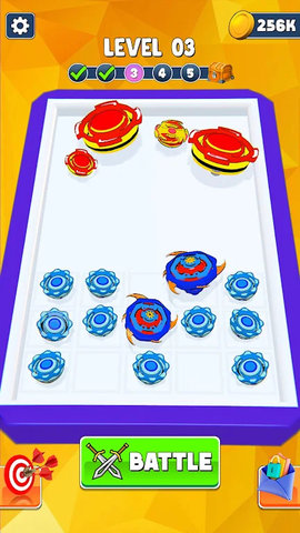 在战斗开始前移动你的旋转陀螺并将其放置在可以击败对手的地方。游戏提供了多种布阵策略,玩家可以根据对手的特点选择不同的站位方式。合理的初始布局往往能决定整场战斗的走向。