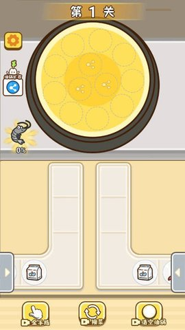 点击第一排食物放入煎锅,每3个相同的食物即可淘汰。注意观察传送带上的食材排列,合理规划消除顺序,才能更快完成任务。