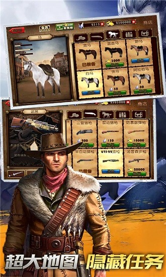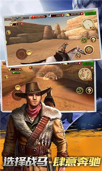 这款游戏将带您回到那个法律由枪杆子说话的狂野年代。作为小镇最后的守护者,您需要运用智慧与勇气对抗土匪帮派、保护无辜居民。游戏采用开放式沙盒设计,超过200平方公里的地图任您探索,从金矿到印第安部落,每个区域都有独特的故事任务。动态事件系统确保每次游戏都能获得新鲜体验,无论是遭遇突如其来的沙尘暴,还是偶遇神秘的流浪商人。