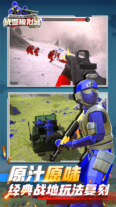 红蓝兵人战地模拟是一款融合了射击与冒险元素的沉浸式游戏,为玩家带来身临其境的战场体验。在广阔的游戏场景中,玩家可以自由选择多种现代化武器进行战斗,通过灵活操控角色视角来观察战场动态。游戏采用直观的触屏操作方式,让玩家能够轻松上手,同时提供丰富的战术选择,包括游击战和阵地攻防等玩法模式。逼真的射击手感和多样化的关卡设计,将为射击游戏爱好者带来持续的新鲜感和挑战乐趣。