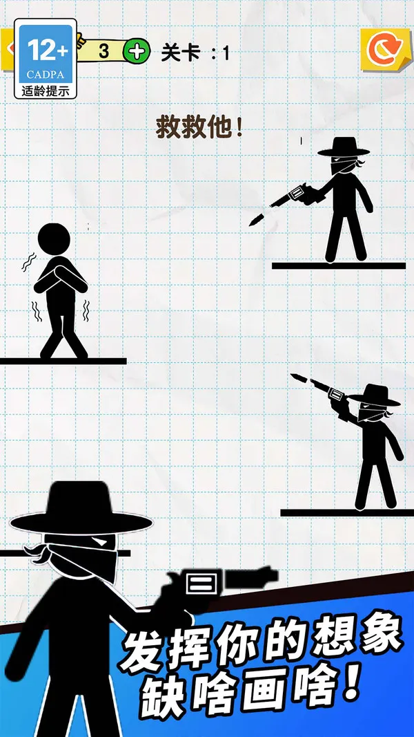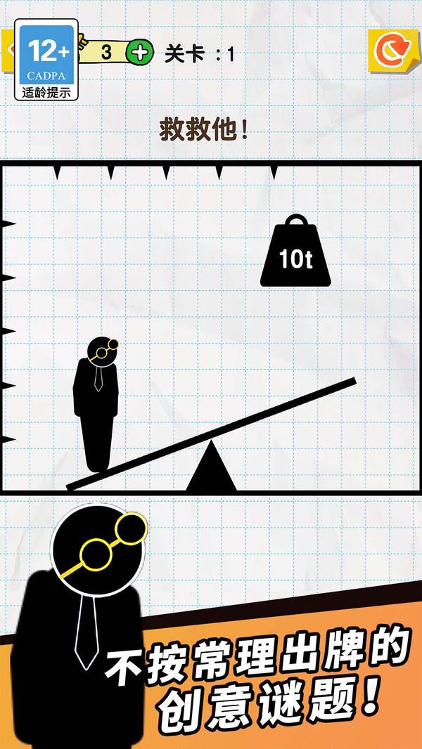 游戏操作非常直观易上手,但想要精通却需要不断练习。当关卡开始时,你会看到一个可爱的火柴人角色被困在危险的位置,可能是悬在悬崖边或是被机关围困。此时你需要快速用手指在屏幕上绘制线条,这些线条会立即实体化成为火柴人可以行走的路径或阻挡危险的屏障。特别要注意的是,绘制时要考虑线条的角度、长度和位置,确保火柴人能安全到达终点。每次成功救援后,系统会根据你的救援速度、线条使用效率和创意解法给出星级评价,激励你不断优化自己的解决方案。