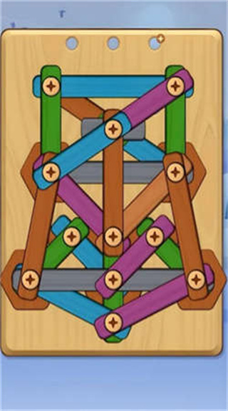 关卡难度循序渐进,从基础教学到高难度挑战,每一关都经过精心设计,确保玩家在解谜过程中不断突破自我。游戏内包含丰富多样的图案和机关,玩家需要通过旋转螺钉、调整角度来拆卸木头,解锁隐藏的谜题。每一关都考验玩家的逻辑思维能力,不同的螺丝组合和机关设计,让解谜过程充满变化和惊喜。
