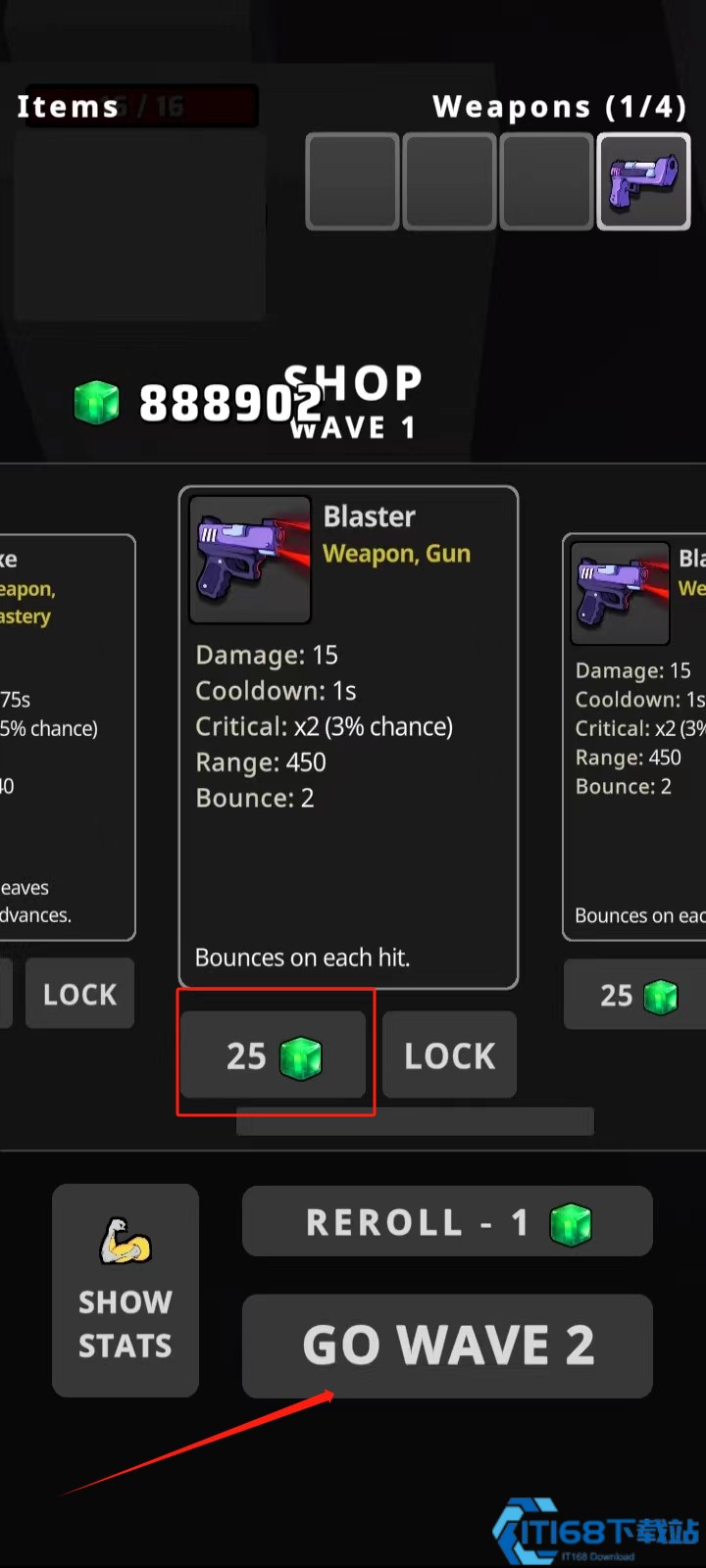使用绿色的晶体购买武器,然后进入下一波战斗。商店系统会定期更新商品,包括强力武器、特殊道具和增益效果等。玩家需要合理分配资源,根据当前战况选择最适合的装备升级方案。某些稀有武器只能在特定关卡中获得,增加了游戏的收集乐趣。