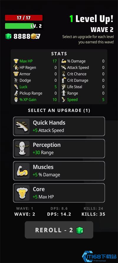 当击败一波敌人的时候,可以点击下方的按钮。系统会自动统计本场战斗的得分和获得的资源,玩家可以在战斗间隙调整装备和技能。每完成一波战斗,敌人的强度和数量都会有所提升,因此玩家需要不断强化自己的战斗力。